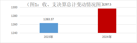 2024年度收、支总计1297.50万元。与2023年相比,收、支总计各增加34.13万元,增长2.7%。主要变动原因是本年度公务用车更新购置、集中管理公务用车运行等增加。单位:万元