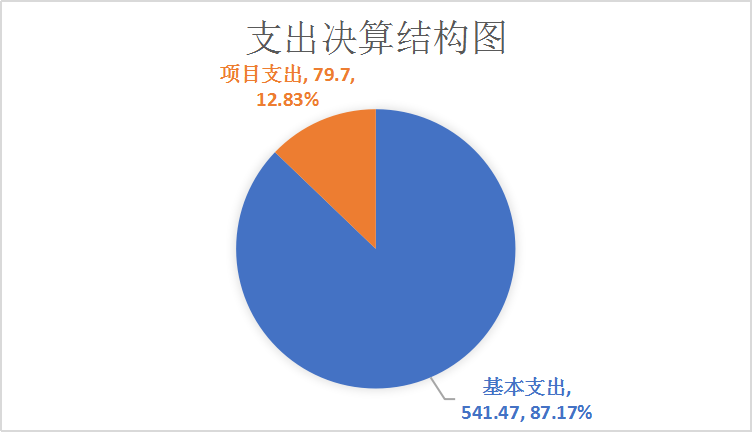 2024年度本年支出合计621.17万元,其中:基本支出541.47万元,占87.17%;项目支出79.7万元,占12.83%。