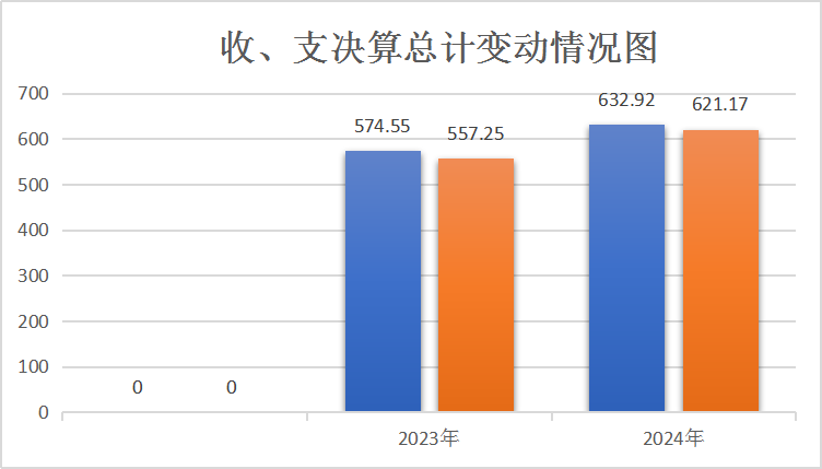 2024年度收、支总计均为632.92万元、621.17万元。与2023年度收、支574.55万元、557.25万元相比,收、支总计各增加58.37万元、63.92万元,收、支增长10.16%、11.47%。主要变动原因本年度正常增加工资调标。