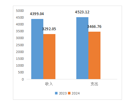 2024年度收入总计3292.05万元。与2023年相比,收入总计减少1106.99万元,减少25.16%;2023年度支出总计3466.76,万元,与2023年相比,支出总计减少1056.36万元,减少23.35%;主要变动原因是财政收入拨款减少。