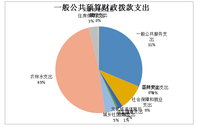 2024年度一般公共预算财政拨款支出3230.05万元,主要用于以下方面:一般公共服务支出767.99万元,占21.77%;国防支出2万元,占0.07%;公共安全支出2万元,占0.07%;社会保障和就业支出230.3万元,占10.65%;卫生健康支出39.52万元,占1.20%;城乡社区支出110万元,占9.39%;农林水支出1190.25万元,占44.84%;文化旅游体育与传媒支出17.97万元,占0.07%;住房保障支出83.6万元,占3.03%;灾害防治及应急管理支出8万元,占0.23%。