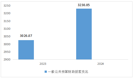 2024年度一般公共预算财政拨款支出3230.05万元,占本年支出合计的98.12%。与2023年度相比,一般公共预算财政拨款支出增加203.98万元,增长6.74%。主要变动原因是财政拨款收入增加。