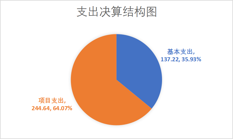 2024年度本年支出合计381.86万元,其中:基本支出137.22万元,占35.93%;项目支出244.64万元,占64.07%;上缴上级支出0万元,占0%;经营支出0万元,占0%;对附属单位补助支出0万元,占0%。