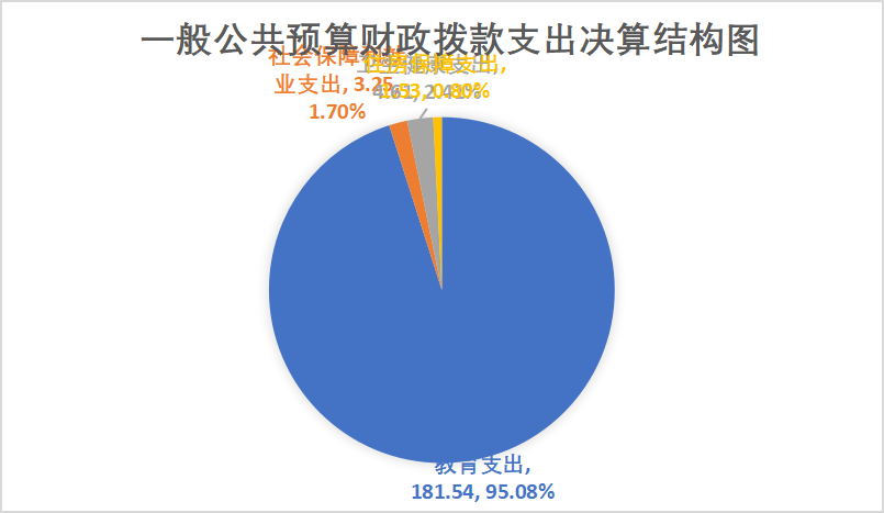 2024年度一般公共预算财政拨款支出190.93万元,主要用于以下方面:教育支出181.54万元,占95.08%;社会保障和就业支出3.25万元,占1.70%;卫生健康支出4.61万元,占2.41%;住房保障支出1.53万元,占0.80%。