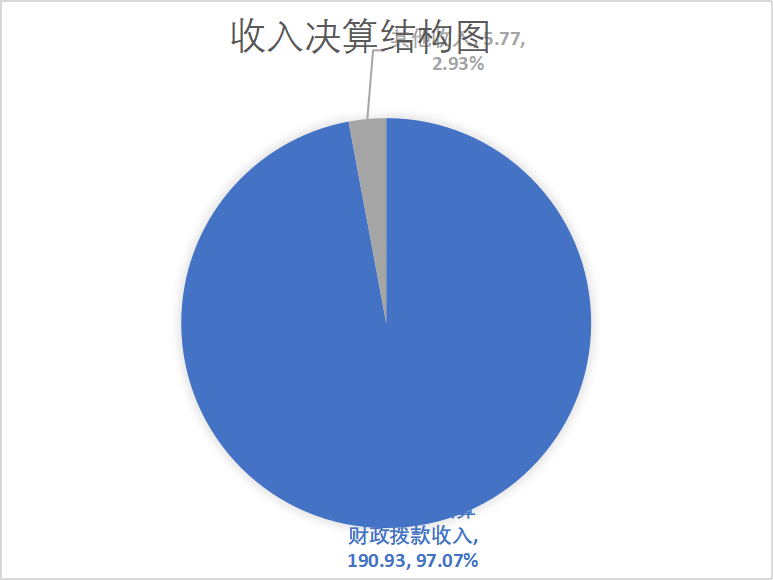 2024年度本年收入合计196.7万元,其中:一般公共预算财政拨款收入190.93万元,占97.07%;政府性基金预算财政拨款收入0万元,占0%;国有资本经营预算财政拨款收入0万元,占0%;上级补助收入0万元,占0%;事业收入0万元,占0%;经营收入0万元,占0%;附属单位上缴收入0万元,占0%;其他收入5.77万元,占2.93%