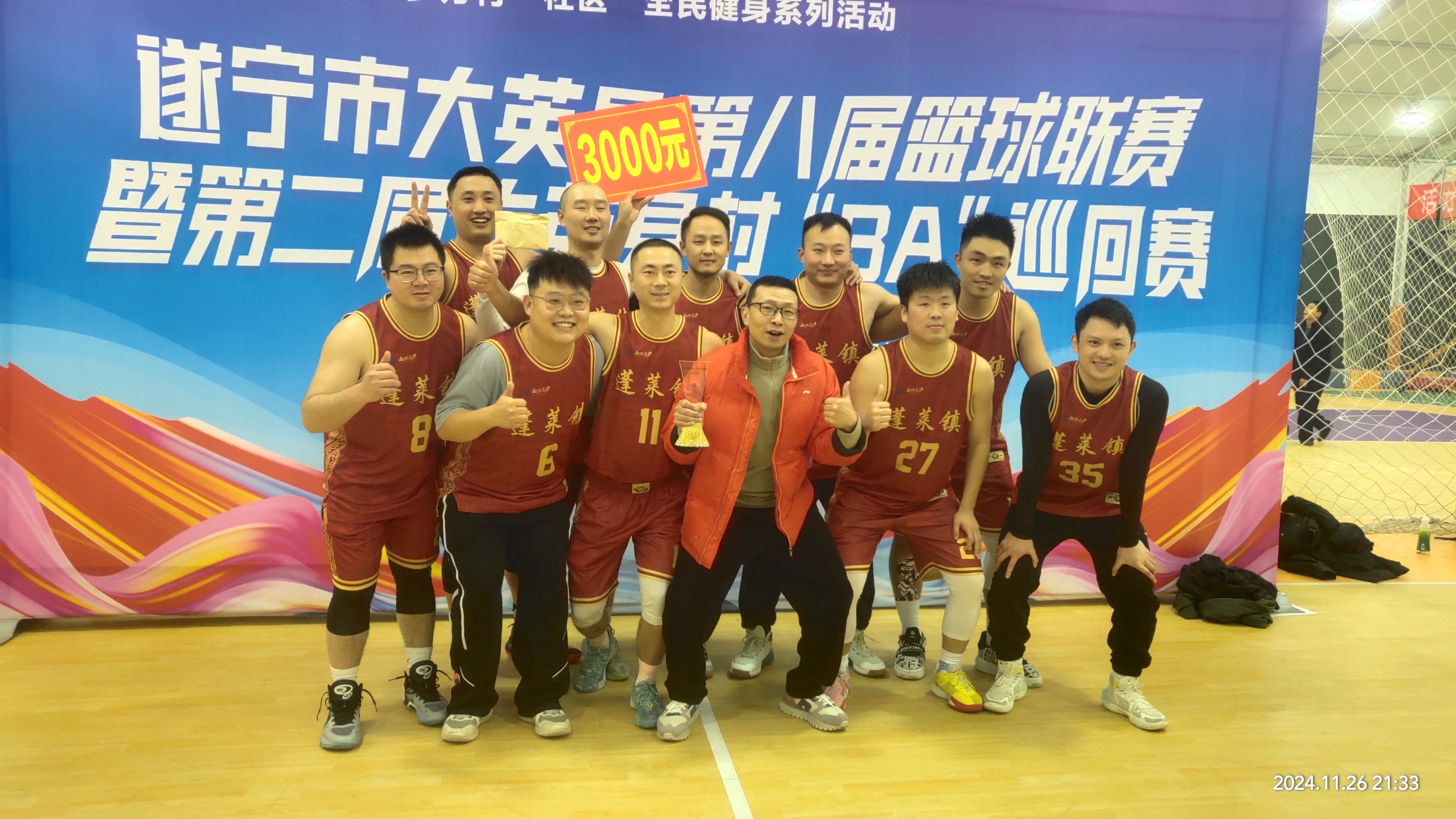 最终,随着裁判的一声哨响,比分定格在61比50,蓬莱镇代表队以11分的优势战胜了隆盛镇代表队,成功夺得了2024年大英县第八届篮球联赛暨第二届村BA巡回赛的总冠军。这场胜利不仅是对蓬莱镇篮球水平的肯定,更是对他们团结协作、勇于拼搏精神的最好诠释。