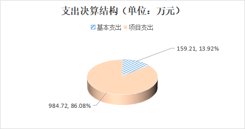 2024年度本年支出合计1143.93万元,其中:基本支出159.21万元,占13.92%;项目支出984.72万元,占86.08%。