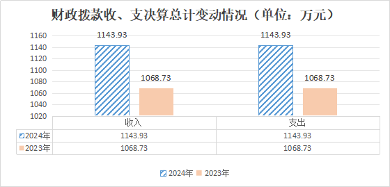 2024年度财政拨款收、支总计均为1143.93万元。与2023年度相比,财政拨款收、支总计各增加75.2万元,增长7.04%。主要变动原因是残疾人康复服务费用增加。