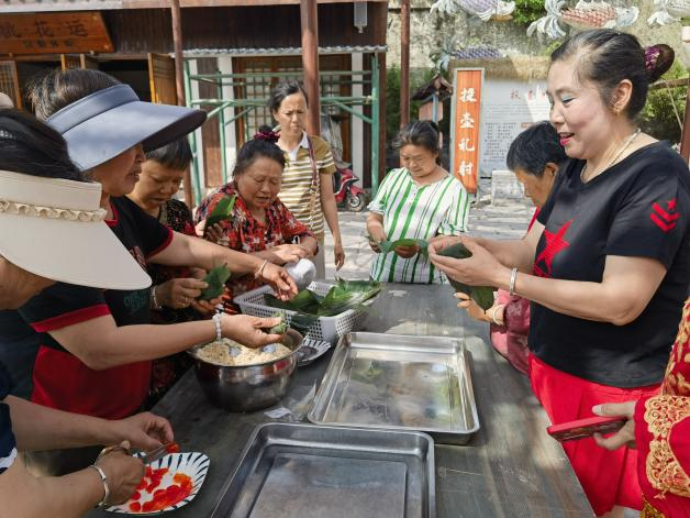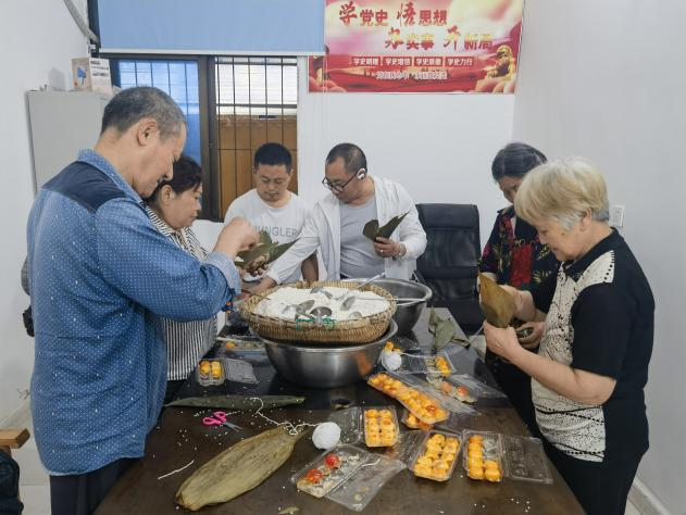 活动伊始,退休教师兰老师用通俗易懂的语言为大家讲解端午节的历史渊源和传统习俗,让大家更加珍惜和传承中华民族的传统文化,进一步增强文化自信和民族自豪感。随后,一场场欢快的舞蹈、小品、歌曲轮番上演。演出人员个个精神饱满、激情洋溢,观众也看得津津有味,演出现场洋溢着温馨、和谐的氛围。表演结束后,在一片欢声笑语中,一个个饱满的粽子渐渐在大家的手中成形。它们裹着甜蜜的馅料,更包进了浓浓的邻里温情。那翠绿的粽叶里,藏着的不仅是糯米与红豆的香甜,更是邻里之间相互帮助、其乐融融的美好时光。
