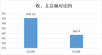 2024年度收、支总计均为383.4万元。与2023年度相比,收、支总计各减少6.83万元,下降1.75%。