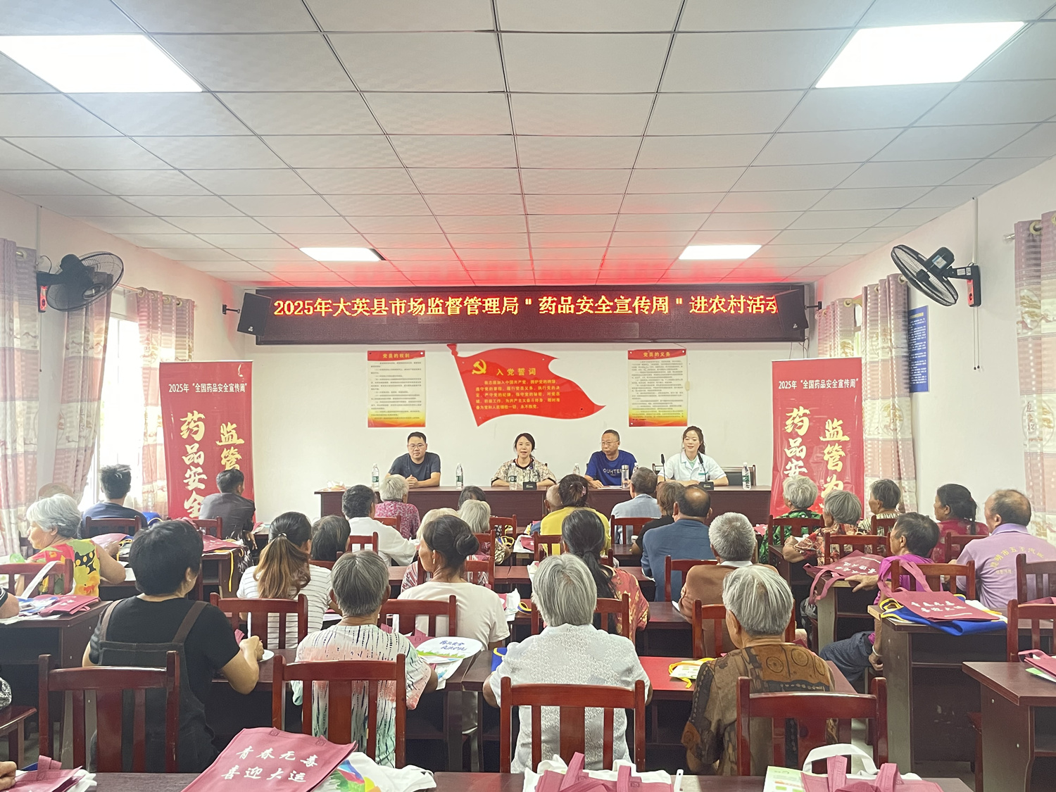 为切实保障农村地区群众用药安全,扩大“安全用药宣传周”的普及范围,提升宣传实效,9月3日,大英县市场监督管理局会同遂宁市市场监督管理局、四川全泰堂药业有限公司深入金元镇金容寨村,开展“安全用药宣传周”进农村活动。