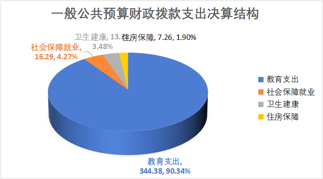 他教育费附加安排的支出6万元。教育类支出决算共计为344.38万元,完成预算100%。