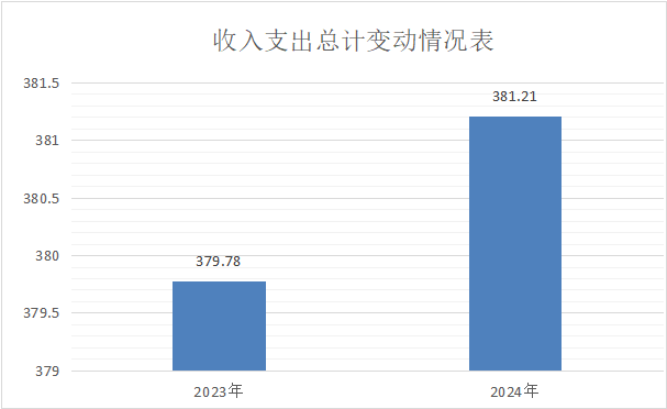 2024年收支总计381.21万元,2023年收支总计379.78万元。与2023年相比,收、支总计增加1.43万元,增加0.38%。主要变动原因是2024年度教师增资。