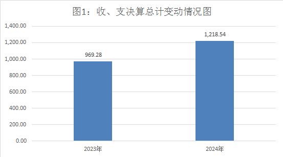 2024年度收、支总计1218.54万元。与2023年相比,收、支总计各增加249.26万元,增长25.72%。主要变动原因是增加了工资和人员以及政府性基金项目。