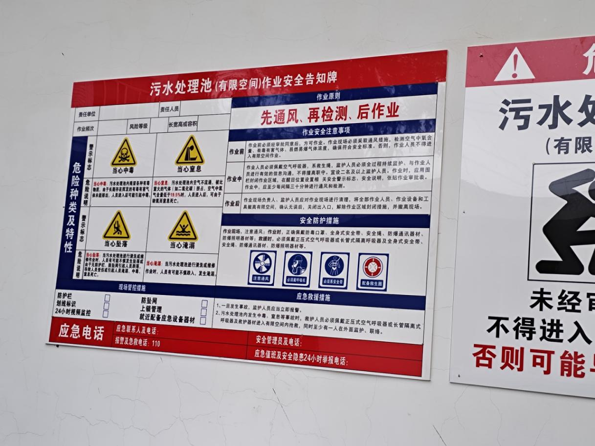整改要求:立即整改,按相关要求完善有限空间公示牌内容。