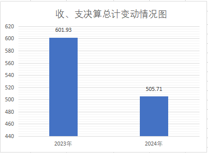 2024年度收、支总计505.71万元。与2023年601.93万元相比,收、支总计各减少96.22万元,减少15.99%。主要变动原因是学生人数减少,工程款减少。