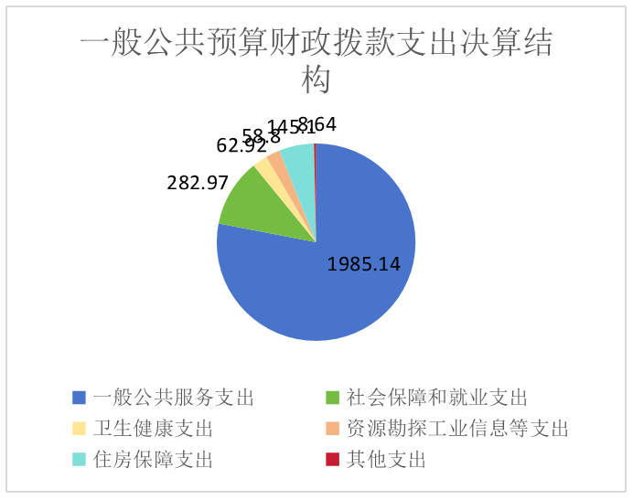 2024年度一般公共预算财政拨款支出2534.94万元,主要用于以下方面:一般公共服务支出1985.14万元,占78.31%;社会保障和就业支出282.97万元,占11.16%;卫生健康支出62.92万元,占2.48%;资源勘探工业信息等支出58.80万元,占2.32%;住房保障支出145.10万元,占5.73%。