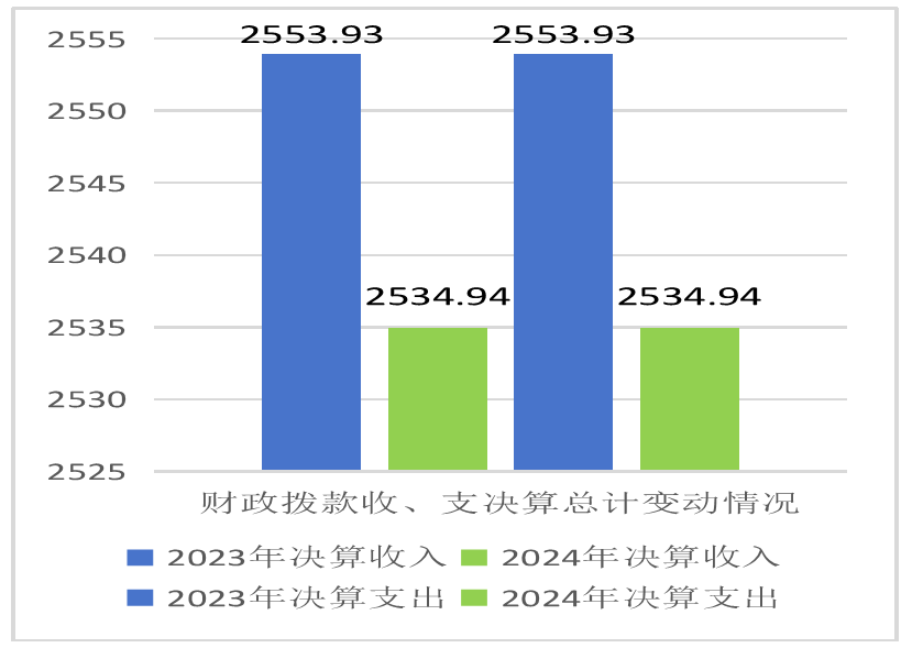 2024年度财政拨款收、支总计均为2534.94万元。与2023年度相比,财政拨款收、支总计各减少18.99万元,下降0.74%。主要变动原因是项目资金减少。