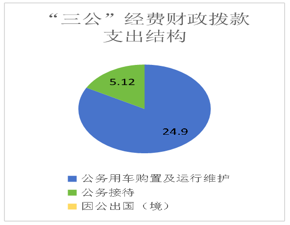 2024年度“三公”经费财政拨款支出决算中,因公出国(境)费支出决算0万元,占0%;公务用车购置及运行维护费支出决算24.90万元,占82.97%;公务接待费支出决算5.12万元,占17.03%。具体情况如下: