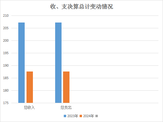 2024年度收、支总计375.24万元。与2023年相比,收入减少19.61万元,主要变动原因是养老院的取消,造成五保户住院病人减少,业务收入减少。支出减少19.61万元,主要变动原因本年度八月份本单位将编制划转至隆盛中心卫生院和河边中心卫生院,减少了人员经费的开支