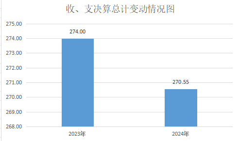 2024年度收、支总计均为270.55万元。与2023年度相比,收、支总计各减少3.45万元,下降1.25%。主要变动原因是办公人员减少。