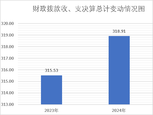 2024年财政拨款收、支总计318.91万元。与2023年315.53万元相比,财政拨款收、支总计各增加3.38 万元,增加1.07 %。主要变动原因是人员退休和新增导致社会保障金额增加。