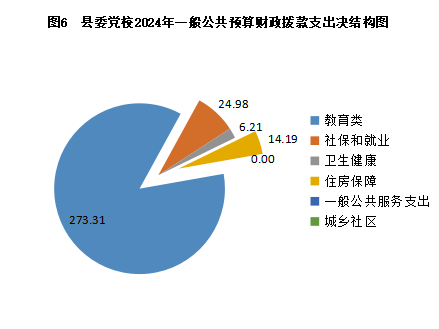 2024年度一般公共预算财政拨款支出318.68万元,主要用于以下方面:一般公共服务支出0.00万元;教育支出273.31万元,占85.76%;社会保障和就业支出24.98万元,占7.84%;卫生健康支出6.21万元,占1.95%;住房保障支出14.19万元,占4.45%。