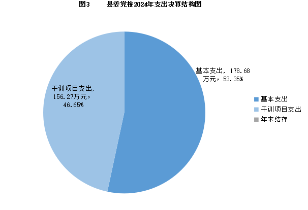 (二)支出情况。中共大英县委党校2024年支出预算合计334.95万元,其中:基本支出178.68万元,占53.35%;项目支出156.27万元,占46.65%。