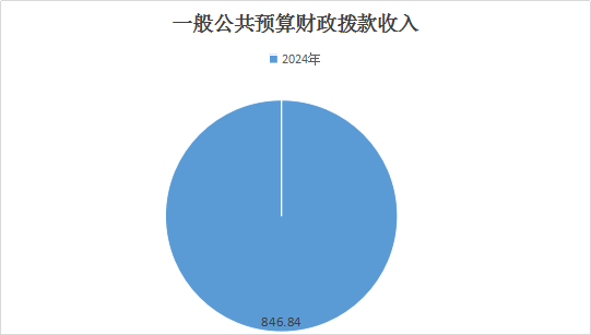 2024年度本年收入合计846.84万元,其中:一般公共预算财政拨款收入846.84万元,占100%;政府性基金预算财政拨款收入0万元,占0%;国有资本经营预算财政拨款收入0万元,占0%;上级补助收入0万元,占0%;事业收入0万元,占0%;经营收入0万元,占0%;附属单位上缴收入0万元,占0%;其他收入0万元,占0%。