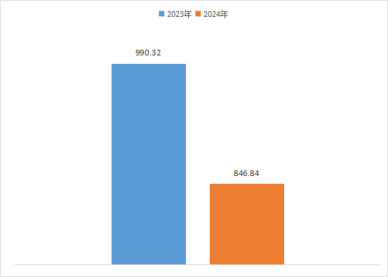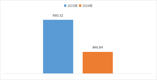 2024年度收、支总计均为846.84万元。与2023年度相比,收、支总计各减少143.48万元,下降14.49%。主要变动原因是在编在职人数减少,年终项目经费由财政统筹支出。