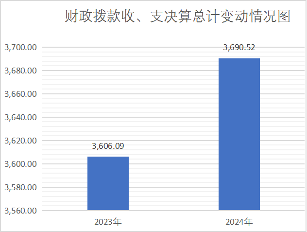 2024年财政拨款收、支总计3,690.52万元。与2023年3,606.09万元相比,财政拨款收、支总计各增加84.43万元,增长2.34%。主要变动原因是项目收、支总计增加。