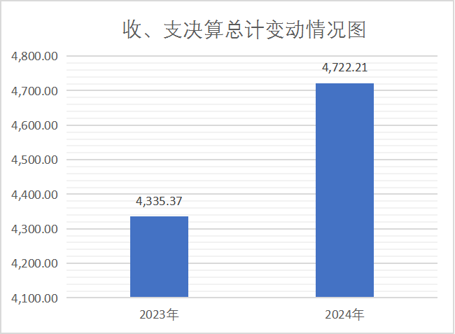 2024年度收、支总计4,722.21万元。与2023年4,335.37 万元相比,收、支总计各增加386.84万元,增长8.92%。主要变动原因是项目收、支总计增加。