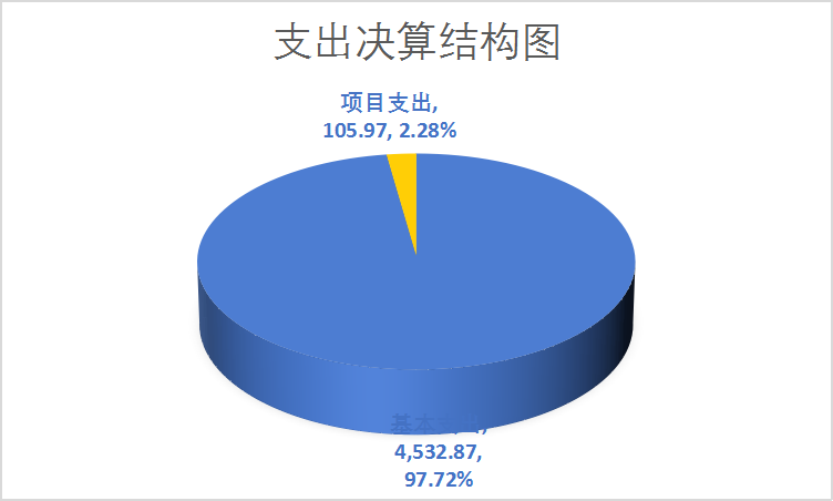 2024年本年支出合计4,638.84万元,其中:基本支出4,532.87万元,占97.72%;项目支出105.97万元,占2.28%。