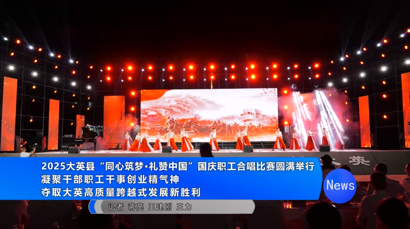 大英融媒体(记者 蒋亮 王建刚 王力)9月29日晚,由中共大英县委、大英县人民政府主办,县委宣传部、县总工会、县文化广电体育旅游局承办的2025大英县“同心筑梦·礼赞中国”国庆职工合唱比赛在政府广场举行。县委书记唐紫薇,县委副书记、县长陈发友,县人大常委会主任文漳,县政协主席王海军出席活动并与干部职工一起参加比赛。四川省大英监狱党委书记、监狱长莫云鹏应邀出席活动。