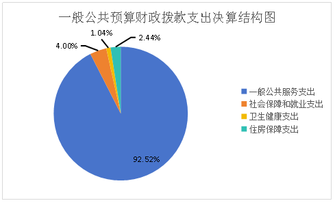 2024年度一般公共预算财政拨款支出557.71万元,主要用于以下方面:一般公共服务支出515.97万元,占92.52%;社会保障和就业支出22.33万元,占4%;卫生健康支出5.80万元,占1.04%;住房保障支出13.61万元,占2.44%。