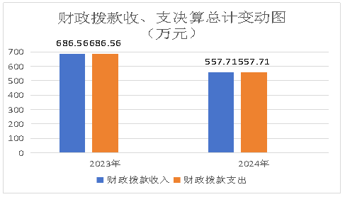 2024年度财政拨款收、支总计均为557.71万元,与2023年度相比,财政拨款收、支总计各减少128.85万元,下降18.77%。主要变动原因:一是在编人员调动、退休等导致相应的运行经费、社会保障就业支出、卫生健康支出、住房公积金支出减少;二是2024年年底申请的63万项目经费因财政资金紧张未拨付;三是收回困难职工救助资金30.40万元;四是省财工会专项资金、市财劳模补助资金预算多下达26.58万元。