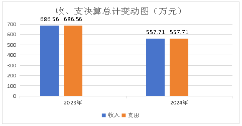 2024年度收、支总计均为557.71万元,与2023年度相比,收、支总计各减少128.85万元,下降18.77%。主要变动原因:一是在编人员调动、退休等导致相应的运行经费、社会保障和就业支出、卫生健康支出、住房公积金支出减少;二是2024年年底申请的63万项目经费因财政资金紧张未拨付;三是收回困难职工救助资金30.40万元;四是省财工会专项资金、市财劳模补助资金预算多下达26.58万元。