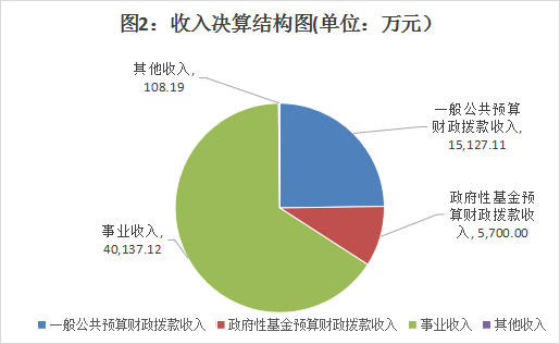 2024年度本年收入合计61,072.41万元,其中:一般公共预算财政拨款收入15,127.11万元,占24.77%;政府性基金预算财政拨款收入5,700.00万元,占9.33%;事业收入40,137.12万元,占65.72%;其他收入108.19万元,占0.18%。