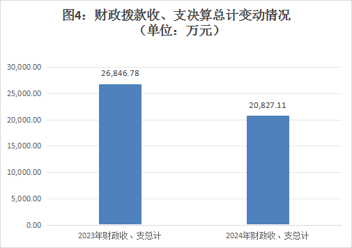 2024年度财政拨款收、支总计均为20,827.11万元。与2023年度相比,财政拨款收、支总计各减少6,019.67万元,下降22.42%。主要变动原因是政府性基金预算财政拨款收入减少。