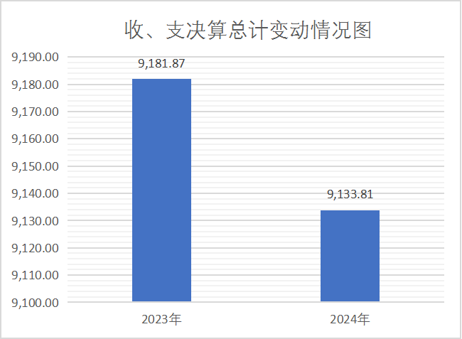 2024年度收、支总计9,133.81万元。与2023年9,181.87万元相比,收、支总计各减少48.06万元,下降0.52%。主要变动原因是学校学生人数收、支减少。