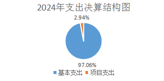 24年本年支出合计1171.95万元,其中:基本支出1137.44万元,占97.1%;项目支出34.51万元,占2.9%;上缴上级支出0万元,占0%;经营支出0万元,占0%;对附属单位补助支出0万元,占0%。