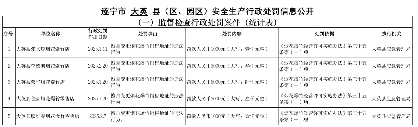 大英县安全生产行政处罚信息公开(2025)