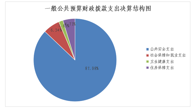 2024年度一般公共预算财政拨款支出1373.08万元,主要用于以下方面:公共安全支出1195.76万元,占87.08%;社会保障和就业支出89.67万元,占6.54%;卫生健康支出22.67万元,占1.65%;住房保障支出64.97万元,占4.73%。