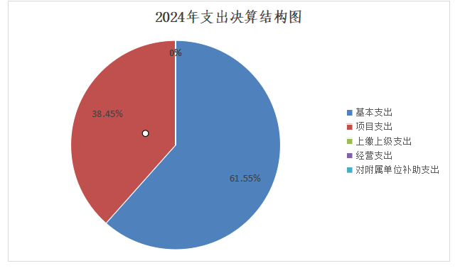2024年度本年支出合计1373.08万元,其中:基本支出845.13万元,占61.55%;项目支出527.95万元,占38.45%;上缴上级支出0万元,占0%;经营支出0万元,占0%;对附属单位补助支出0万元,占0%。
