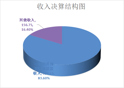 2024年本年收入合计955.94万元,其中:一般公共预算财政拨款收入799.19万元,占83.60%;政府性基金预算财政拨款收入0万元,占0%;上级补助收入0万元,占0%;事业收入0万元,占0%;其他收入156.75万元,占16.40%。(图2:收入决算结构图)(饼状图)