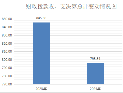 2024年财政拨款收入总计795.84万元,支出总计795.84万元。与2023年相比,财政拨款收入总计减少49.72万元,降低6.25%;财政拨款支出总计减少49.72,降低5.88%。主要变动原因是学生人数减少和建设项目拨款减少。(图4:财政拨款收、支决算总计变动情况)(柱状图)