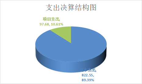 2024年本年支出合计920.23万元,其中:基本支出822.55万元,占89.39%;项目支出97.68万元,占10.61%;上缴上级支出0万元,占0%;经营支出0万元,占0%;对附属单位补助支出0万元,占0%。(图3:支出决算结构图)(饼状图)