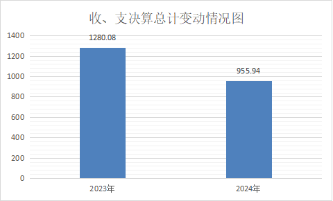 2024年度收入总计955.94万元、支出总计955.94万元。与2023年相比,收入总计减少324.14万元,减少25.32%;支出总计减少324.14万元,减少25.32%。主要变动原因是增加原因:学生人数减少、建设项目财政拨款减少。(图1:收支变动总计结构图)(柱形图)