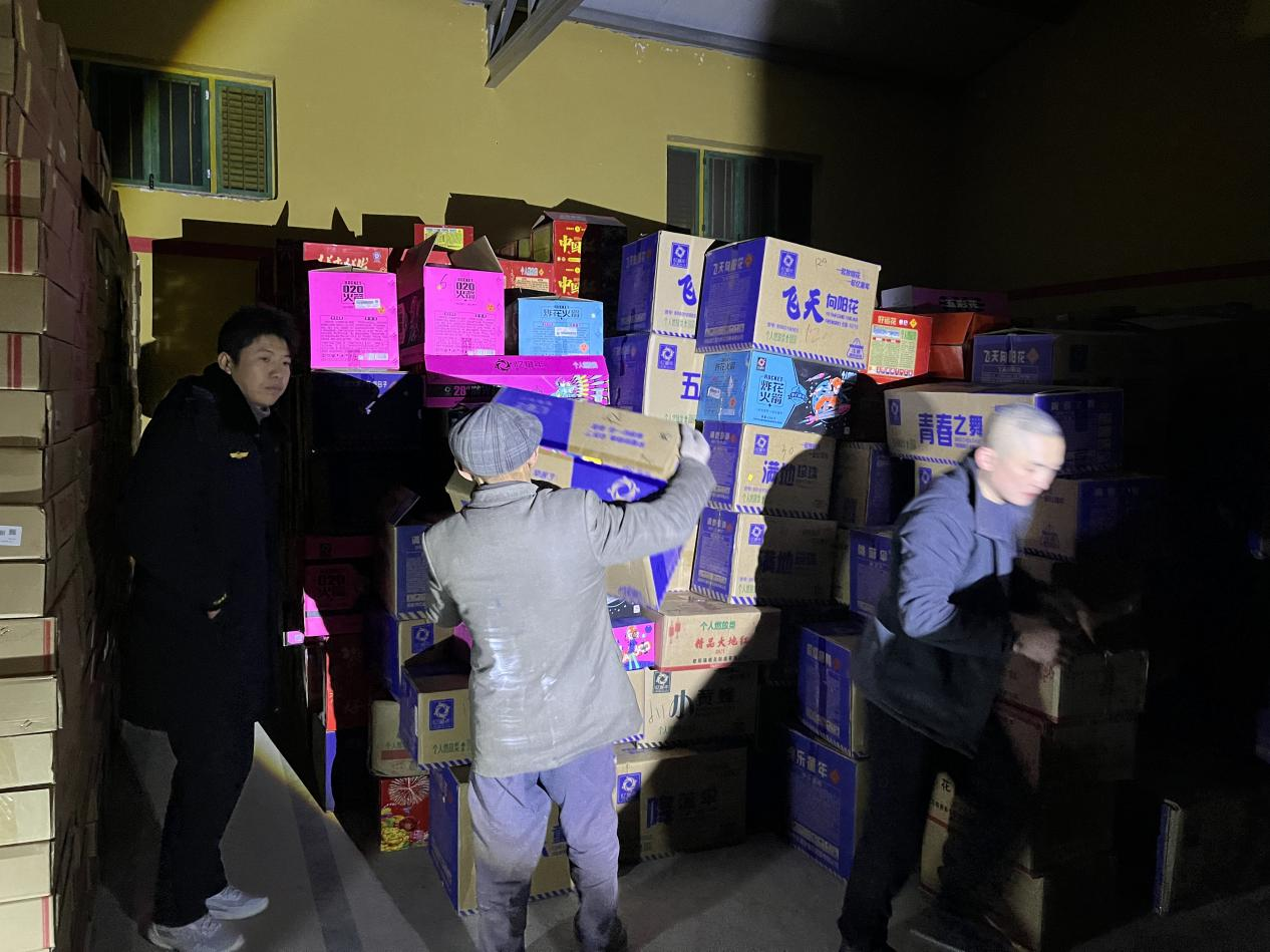 近日,大英县应急管理局接到群众举报,称河边镇坤龙村某门面涉嫌违法储存烟花爆竹。接到举报后,大英县应急管理局执法大队工作人员迅速行动,赓即前往现场,并联合河边派出所进行核查。经查验核实,该商店门面内存放了各类烟花415箱、各类爆竹122件,也无烟花爆竹经营(零售)许可证。