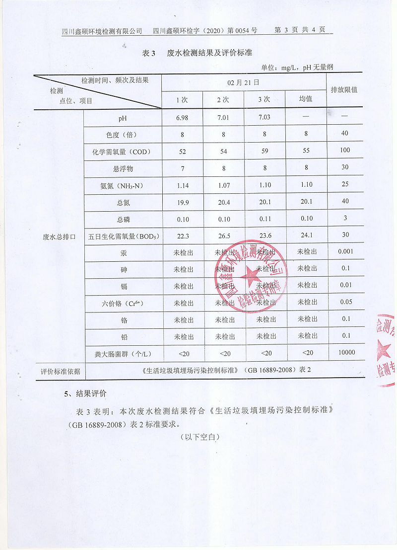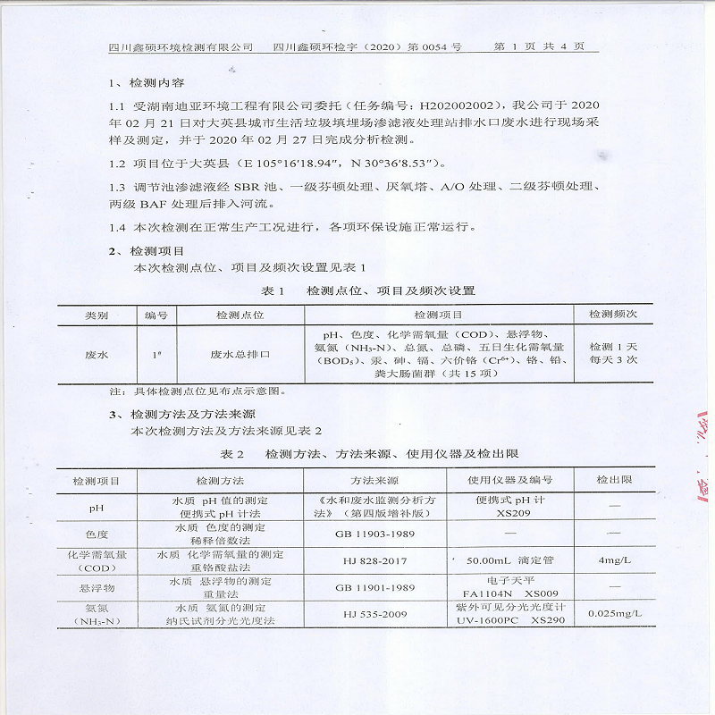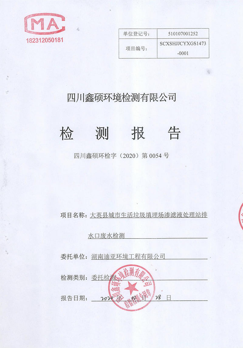 大英县城市生活垃圾填埋场渗滤液处理站水口废水检测